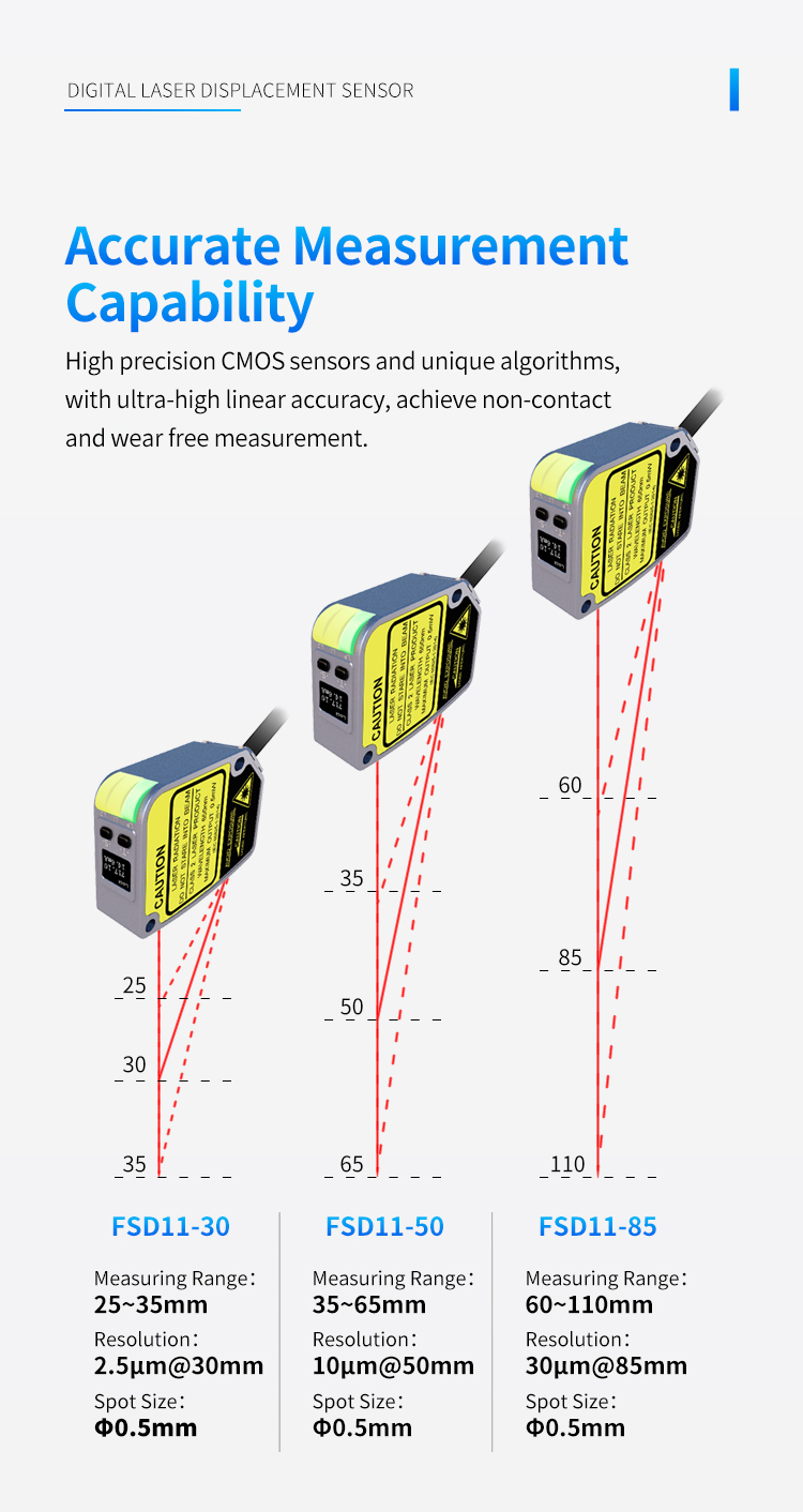 В области точного контроля в современном промышленном производстве каждое тонкое измерение и позиционирование напрямую связано с качеством и эффективностью производства продукта. Лазерный дальномер Fuwei FSD11, оптимизированный с помощью уникального алгоритма, обеспечивает стабильное и надежное обнаружение небольших объектов. Будь то контроль высоты укладки печатных плат или обнаружение наличия или отсутствия прокладок крышек бутылок, он может гарантировать точность данных измерений. Эта возможность высокоточного обнаружения обеспечивает надежную гарантию контроля качества на производственной линии.