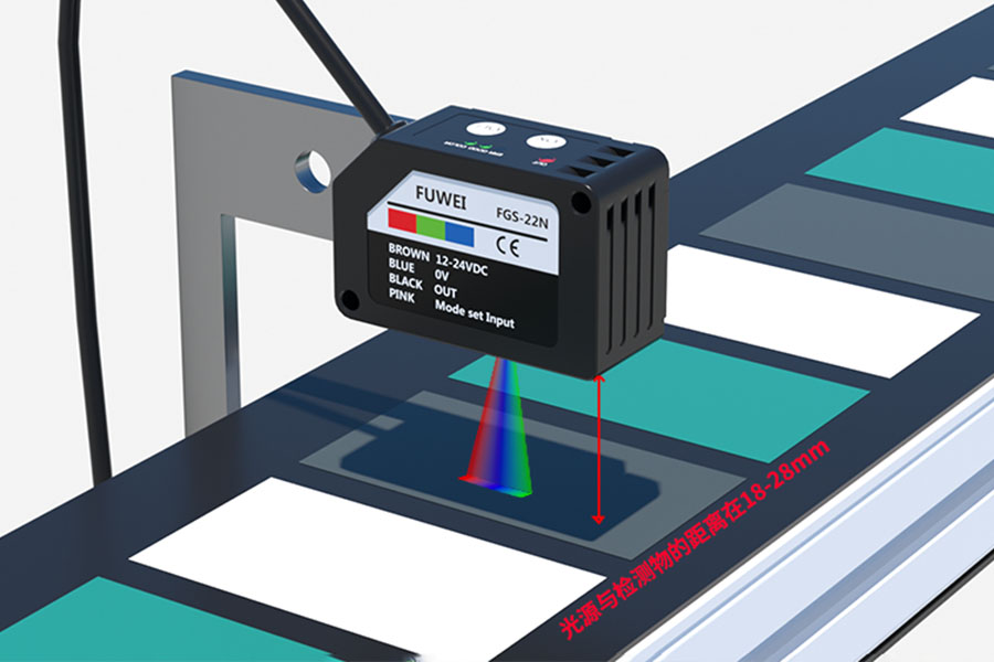 Датчик цветных меток серии FGS-22N от Fuwei Electronics оснащен встроенными независимыми источниками красного, зеленого и синего светодиодов. Он автоматически выбирает оптимальную комбинацию светодиодов на основе характеристик поверхности целевого объекта.