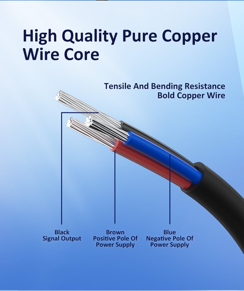 Исключительная стабильность и высокая надежность. Мы понимаем суровые реалии промышленной среды: вибрация, загрязнение маслом и колебания температуры являются нормой. В серии FSNS18-10 используются высококачественные компоненты и усовершенствованная схема, обеспечивающая отсутствие ухудшения производительности во время непрерывной работы с высокой интенсивностью. Независимо от того, сталкиваетесь ли вы с постоянной вибрацией текстильного оборудования или с высокими температурами и масляным туманом в станочном цехе, он работает стабильно, обеспечивая стабильную и высокую производительность, обеспечивая непрерывную работу вашей производственной линии.1.3. Гениальный дизайн, прочность и долговечность. Высокопрочный сердечник из чистой меди: мы твердо верим, что внутреннее качество определяет срок службы продукта. В качестве жилы сенсорного кабеля используется высококачественная чистая медь, обеспечивающая превосходную проводимость и меньшие потери при передаче сигнала. В то же время жила из чистой меди придает кабелю исключительную устойчивость к растяжению и изгибу. Даже после многократного перетаскивания или сгибания он эффективно предотвращает внутренние поломки, значительно продлевая срок его службы в динамических приложениях и сводя к минимуму время простоя, вызванное повреждением кабеля.